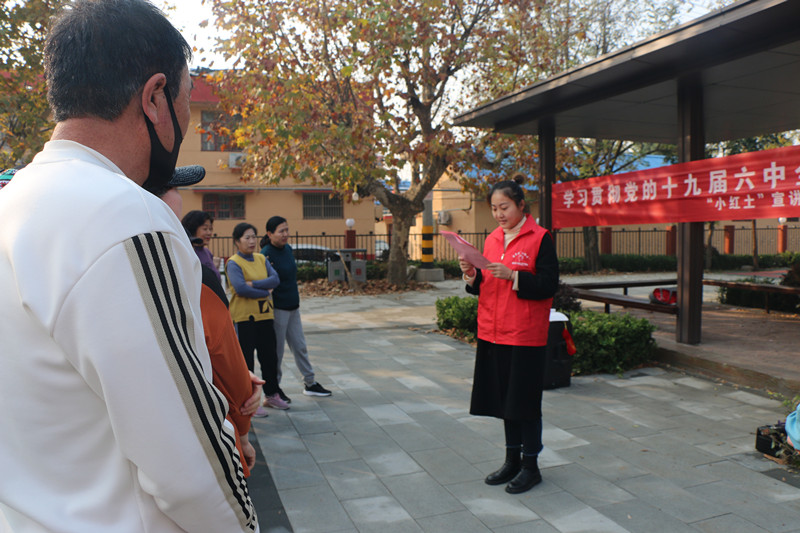 為及時(shí)傳達(dá)黨的十九屆六中全會(huì)精神,把全會(huì)精神送到千家萬(wàn)戶(hù),讓全會(huì)精神在群眾中落地生根,11月16日,龍山路街道組織開(kāi)展“學(xué)習(xí)貫徹黨的十九屆六中全會(huì)精神”宣講活動(dòng);顒(dòng)中,“小紅土”宣講員親切地給社區(qū)居民們講解了中國(guó)共產(chǎn)黨百年奮斗的歷史意義和寶貴歷史經(jīng)驗(yàn),對(duì)全會(huì)精神進(jìn)行了系統(tǒng)宣講和深入解讀,通過(guò)“面對(duì)面”的家常嘮嗑式宣講,讓宣講理論變得通俗易懂,不僅深深地吸引了在場(chǎng)居民,還讓居民感受到了“聽(tīng)得懂”“坐得住”“傳得開(kāi)”的新思想,真正的做到讓“全會(huì)精神”潤(rùn)人心。據(jù)統(tǒng)計(jì),現(xiàn)場(chǎng)共發(fā)放《十九屆六中全會(huì)精神主要內(nèi)容》等宣傳頁(yè)200余張。