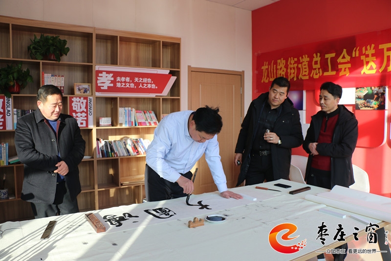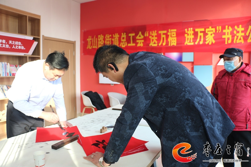 “給大家送‘!!”伴隨著新年的祝福,龍山路街道總工會(huì)的工作人員們正將書法家們寫好的一張張福字雙手遞給在場的職工。1月16日上午,市中區(qū)龍山路街道總工會(huì)在公勝街紅色驛站組織開展“送萬福 進(jìn)萬家”書法公益活動(dòng),邀請(qǐng)省書法家協(xié)會(huì)的4位書法家代表,在活動(dòng)現(xiàn)場手寫福字和對(duì)聯(lián),為廣大職工群眾以及轄區(qū)企業(yè)送去新春的祝福和問候。
