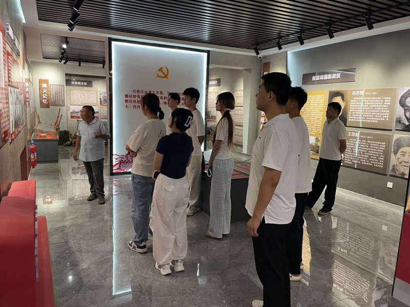 隨后,鎮(zhèn)文化書院“烽火紅印”志愿者丁繼海同志帶領(lǐng)新入學(xué)大學(xué)生們前往黃丘山套紅色記憶館開展紅色教育。通過參觀珍貴史料、聆聽革命故事,學(xué)子們深刻感悟革命先輩的奮斗精神,進一步堅定了傳承紅色基因、勇?lián)鷷r代使命的理想信念。